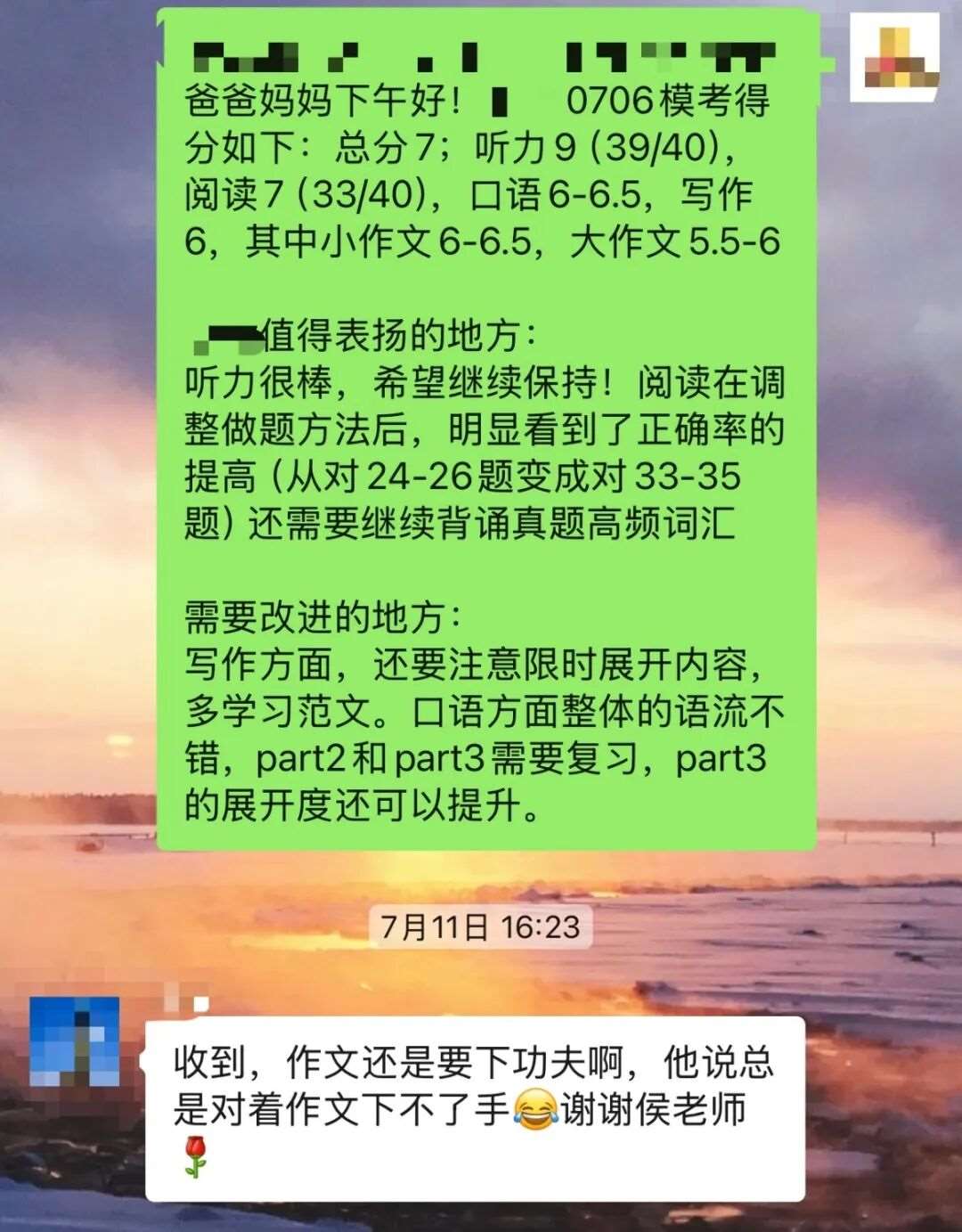针对信息量过大和无法同时听和做题的情况,Pauline老师祭出了重复关键词聆听的大招,刘同学不仅能提炼重要内容,还能清晰判断可能的考点位置,最终从6.5提升到8.5分!