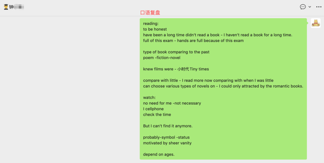 “和写作一样,看到题目脑袋已经空空”,“看到老外我只能几个字几个字往外蹦,偶尔完整的一句话表达讲的全是我小学学习的英语句子”。